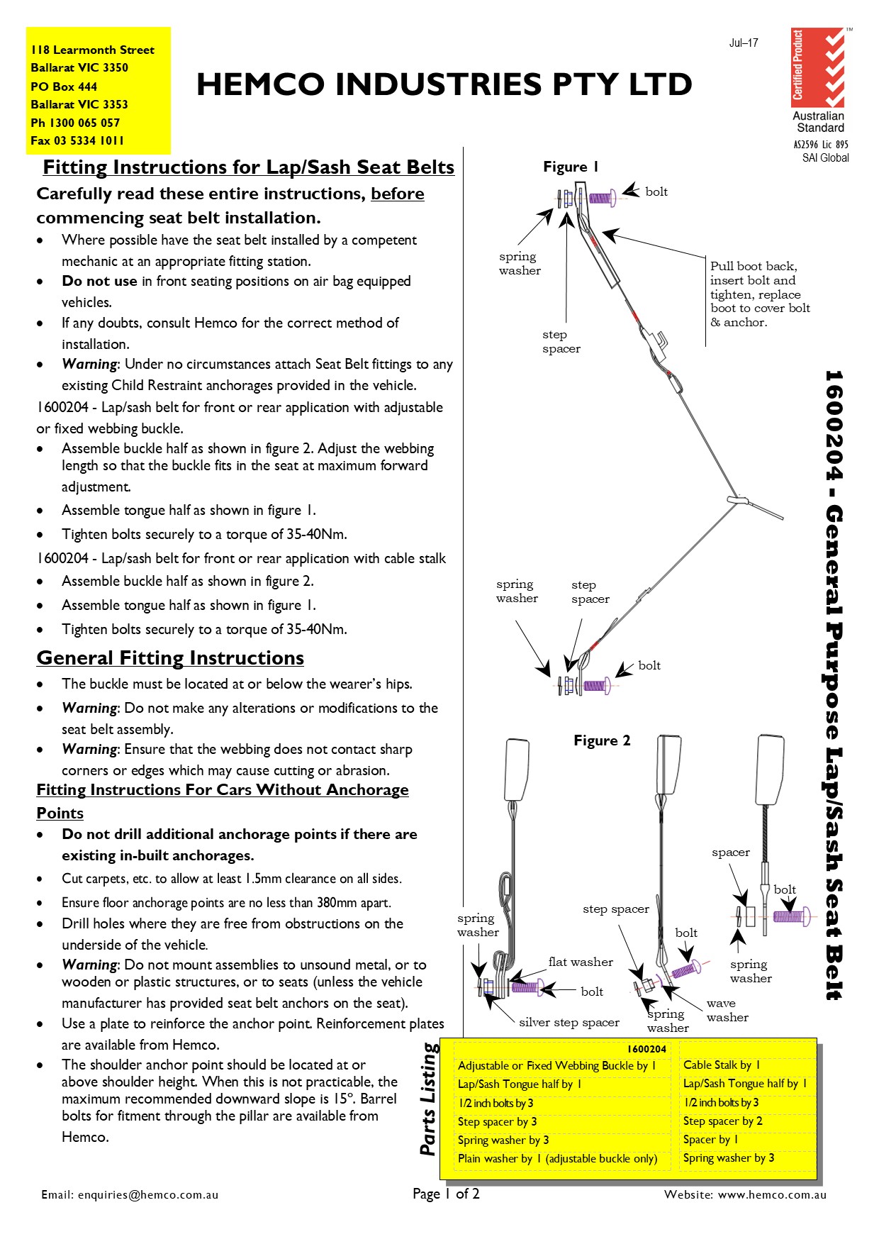 If you require something that is not listed, please email your enquiry to sales@hemco.com.au